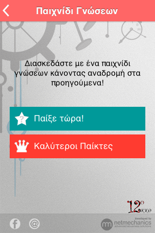 Στο 2o μέρος της εφαρμογής θα μπορέσετε να παίξετε ένα παιχνίδι γνώσεων το οποίο βασίζεται στα προηγούμενα 11 κυνήγια κρυμμένου θησαυρού που πραγματοποιήθηκαν στο Ηράκλειο Κρήτης. Το παιχνίδι αυτό έχει ως σκοπό να βάλει τους παλαιότερους “κυνηγούς” σε μια διαδικασία αναδρομής αλλά και να μπουν στο πνεύμα του κυνηγιού όσοι δεν έχουν πάρει μέρος μέχρι τώρα. Οι ερωτήσεις είναι βγαλμένες μέσα από την ιστορία, τους γρίφους και τις δραστηριότητες που είχαν οι διοργανώσεις κάθε χρονιά.